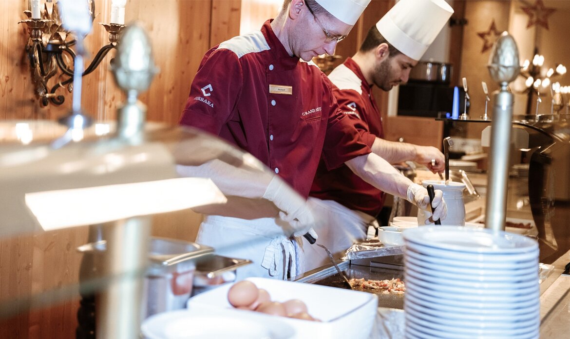 ندللك في إطار نصف الإقامة في فندق غراند زيلامسي كل مساءٍ بين الساعة 18:30 و21:00 بقائمة طعام مؤلَّفة بروعة وعناية. يمكنك الاختيار من بين ما مجموعه 12 طبقًا و3 خطوط للمأكولات - من النمساوي الكلاسيكي إلى الصحي الممتع إلى النباتي اللذيذ. هكذا تتوِّج عطلتك بأشهى المأكولات.